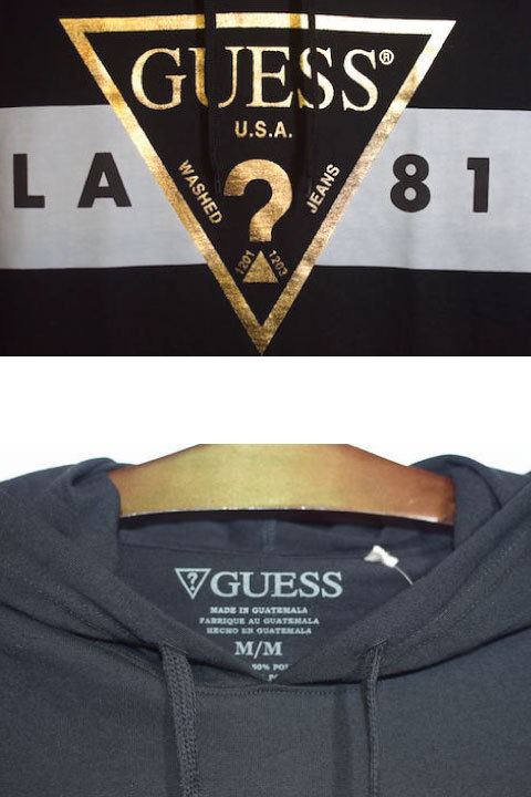 Guess(ゲス) S/S Triangle Logo Hood Tee Black Red フード 半袖 Tシャツ