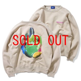 グラフィティーとポラロイドによる「DEE KNOWS」らしい仕上がりのクルーネックスウェットシャツ。 ガーメントダイ加工を施したライトウェイトなスウェットボディを採用。 「PRO」と壁に描かれたグラフィティーのポラロイド写真をフロントにプリントし、バックにはボディーカラーごとに異なる「P」「R」「O」の文字を大判でプリント。 右袖先には「DEE KNOWS」のシグネチャー、左袖先にはLafayetteのロゴを刺繍。 DEEによる独創的なカメラワークをファッションと通して、一つの作品として仕上げたアート性の高い一枚。