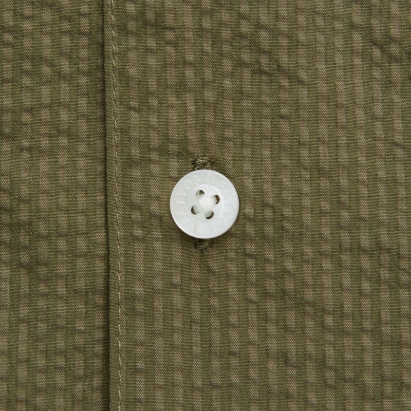 - > Curveball seersucker baseball shirt シアサッカー ベース ボールシャツ ストレッチ BIGシルエット ベース ボールシャツ カットソー Olive Green オリーブ グリーン