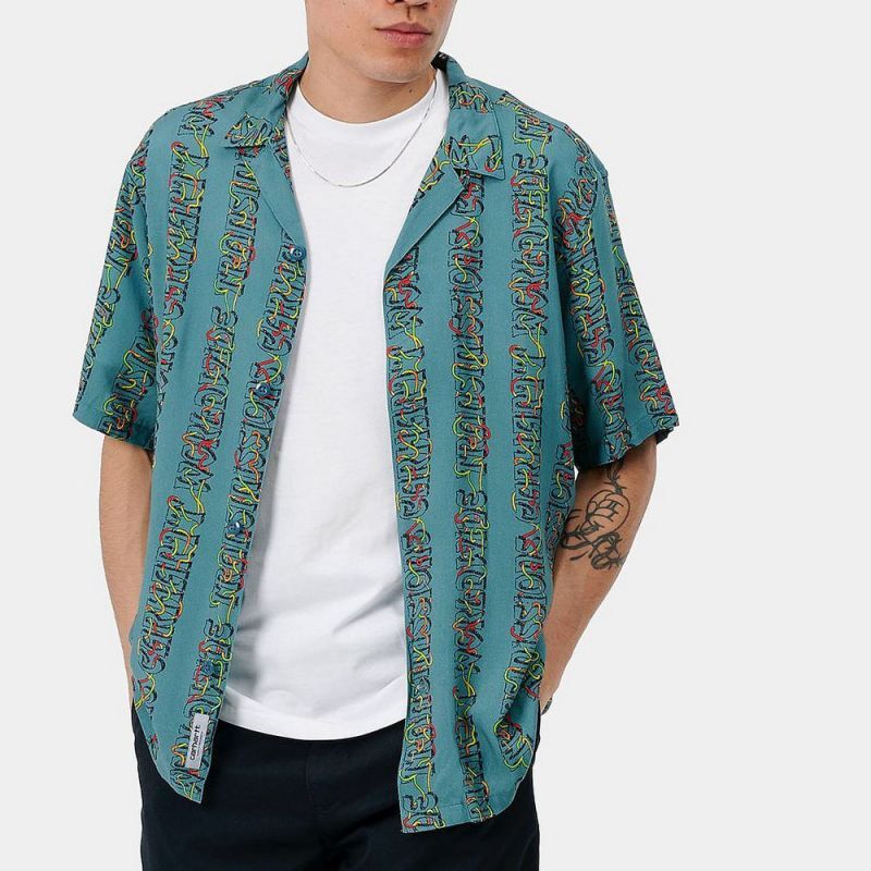 - > Transmission S/S Allover Open Colour Shirt オープンカラー ルーズフィット 半袖 柄 シャツ Hydro Green