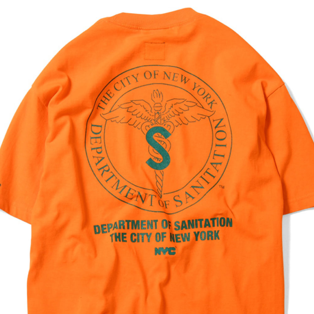 ニューヨークのゴミ収集や清掃、除雪作業などを請け負うNY市衛生局(DSNY / NYC Department of Sanitation)をイメージしてデザインされた、ワントーンプリントでシンプルにまとめながらも、DSNYの象徴的なデザインがバックに大判で表現されたインパクト抜群の半袖Tシャツとなります。