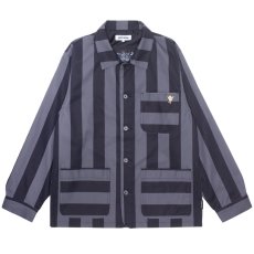 - > Filigree Striped Chore Jacket ストライプ ジャケット シャツ Black Grey