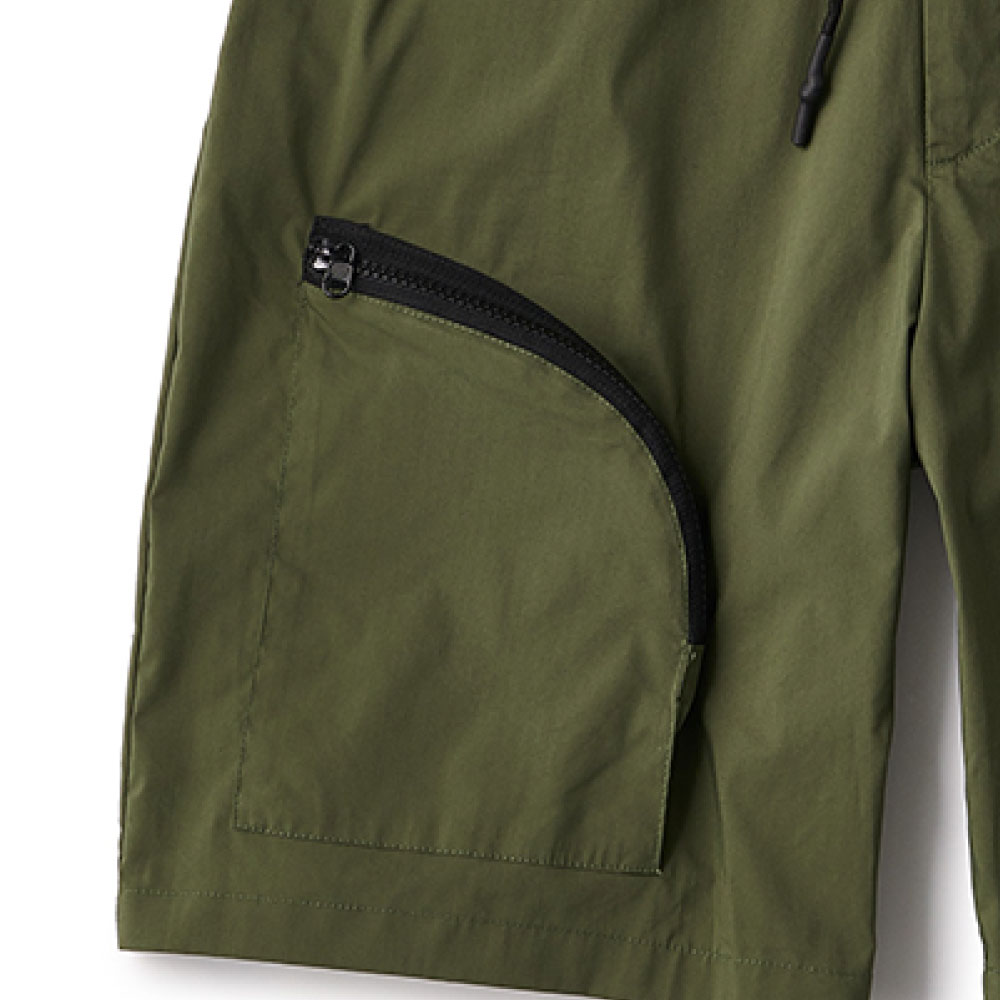 機能的なポケットを随所に配置した、ミリタリー、アウトドアテイストをミックスしたイージータイプのショーツとなります。