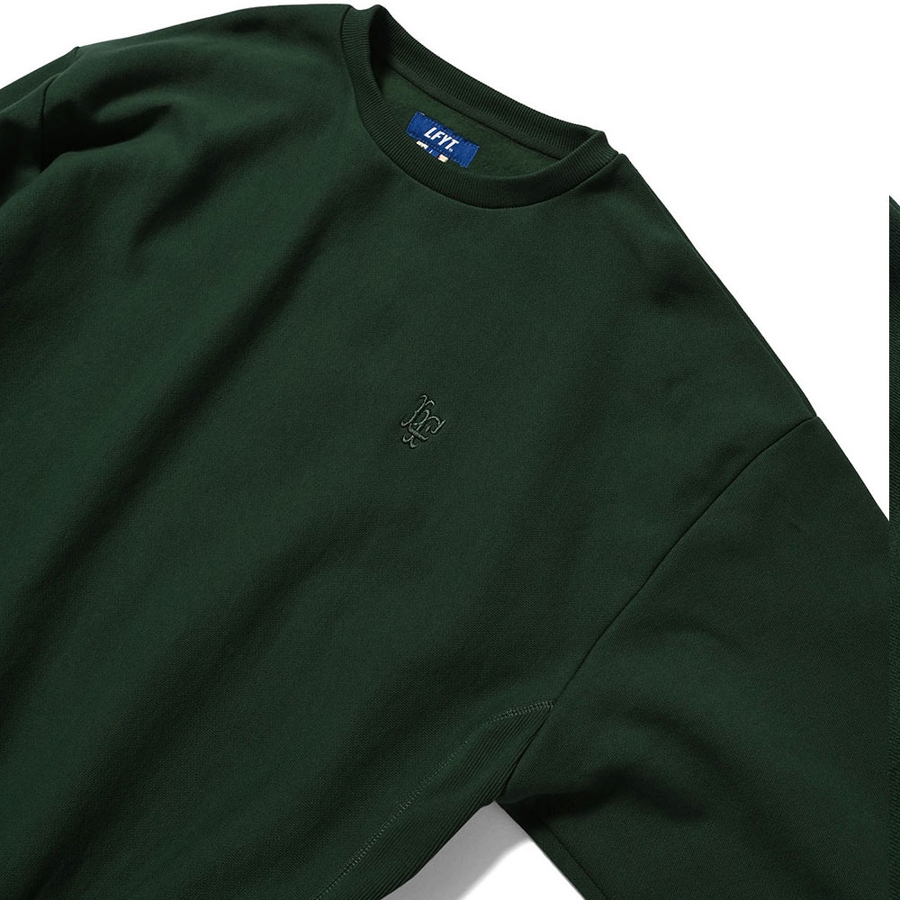 左胸に小さくLFロゴを刺繍したシンプルなクルーネックスウェットとなります。