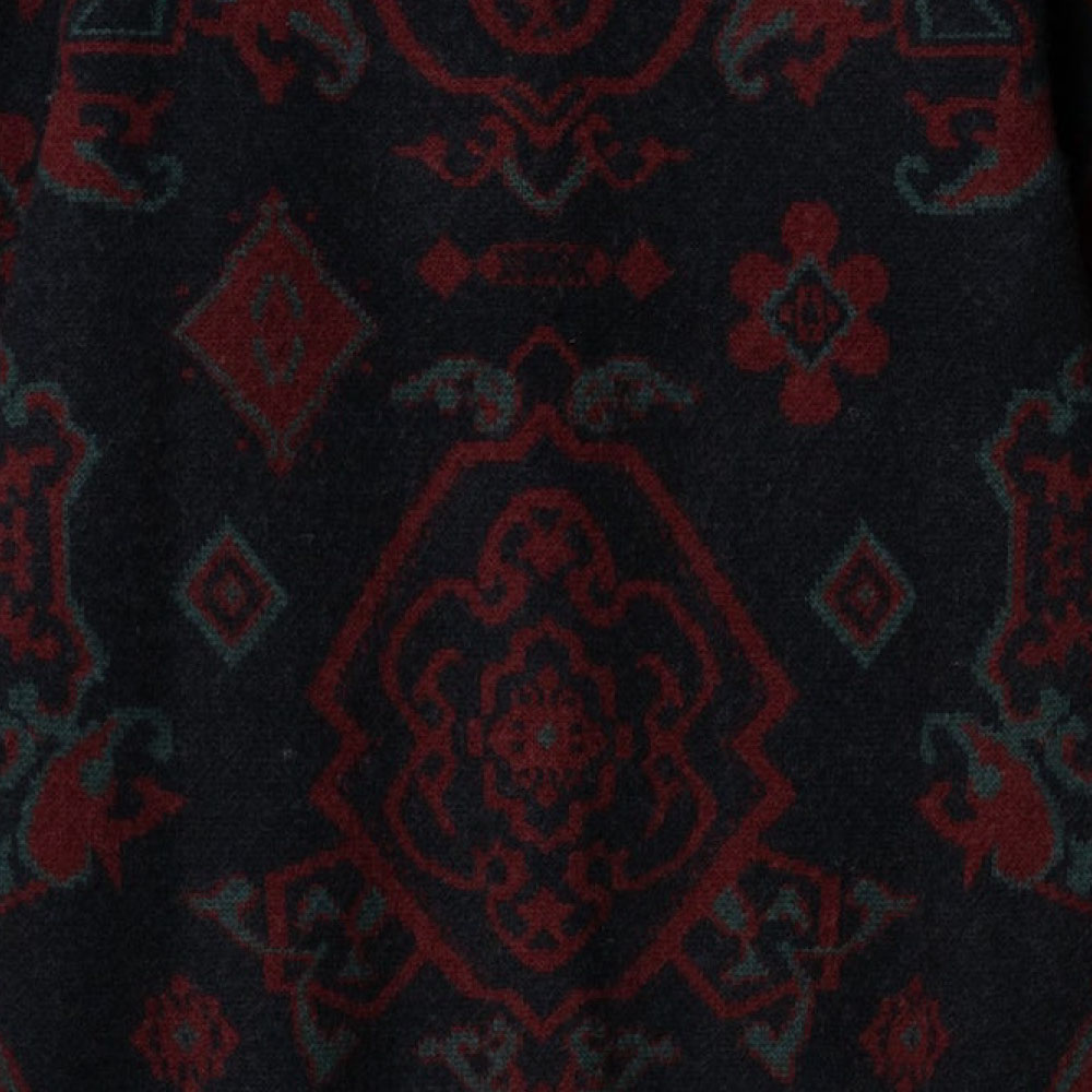 ナイロン、アクリル糸、ウールの7ゲージ混紡糸で編まれたバロック風ジャカードモチーフを全体にあしらったデザインでとなります。
