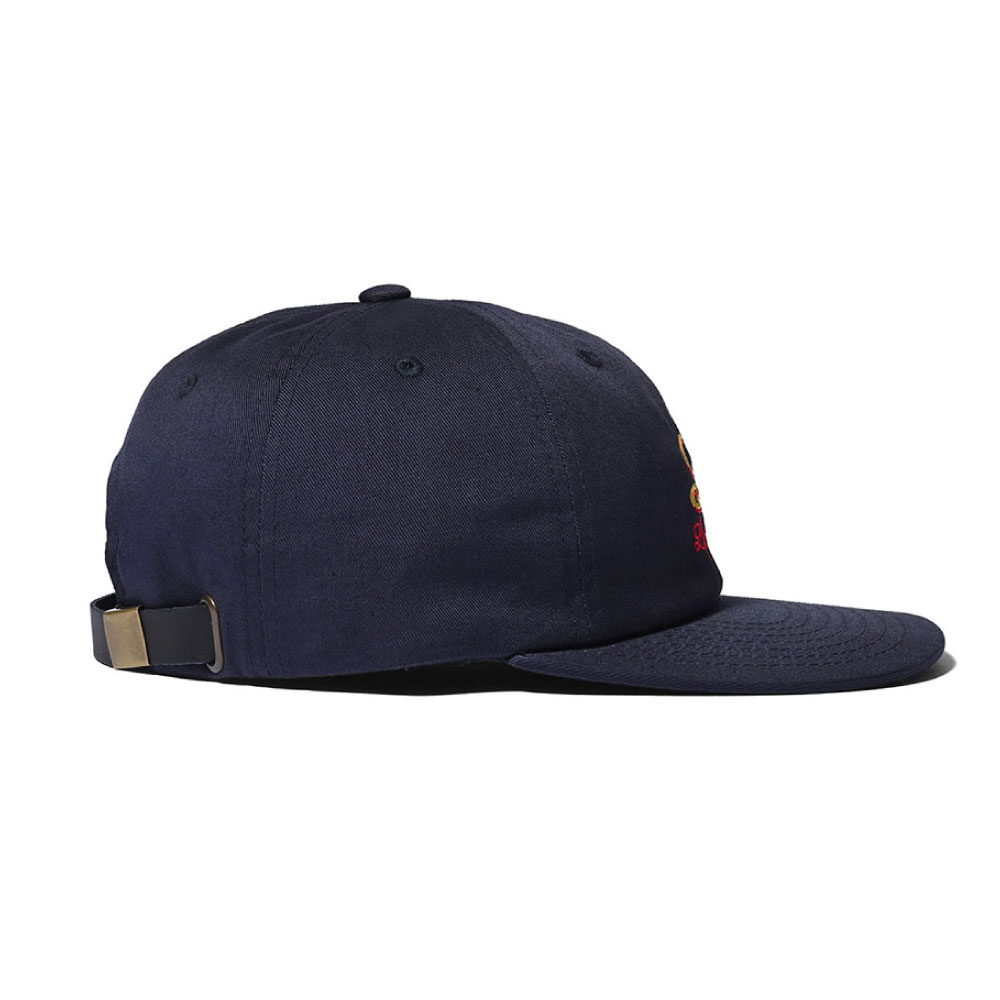 スクリプトとクラウンのグラフィックロゴを刺繍で落とし込んだキャップとなります。