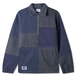 - > Patchwork Plaid L/S Stripe Shirt Overdye BLU パッチワーク ストライプ 長袖 シャツ
