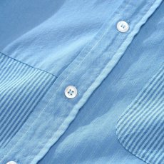 Patchwork Plaid L/S Stripe Shirt Overdye BLU パッチワーク ストライプ 長袖 シャツ