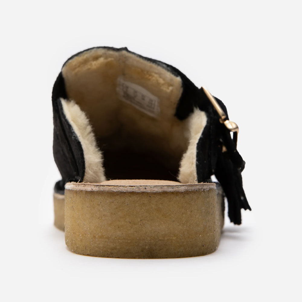 Wmns Trek Mule Warm Lined クラークス オリジナルズ ウィメンズ レディース トレック タッセル ミュール サンダル ブラック スエード