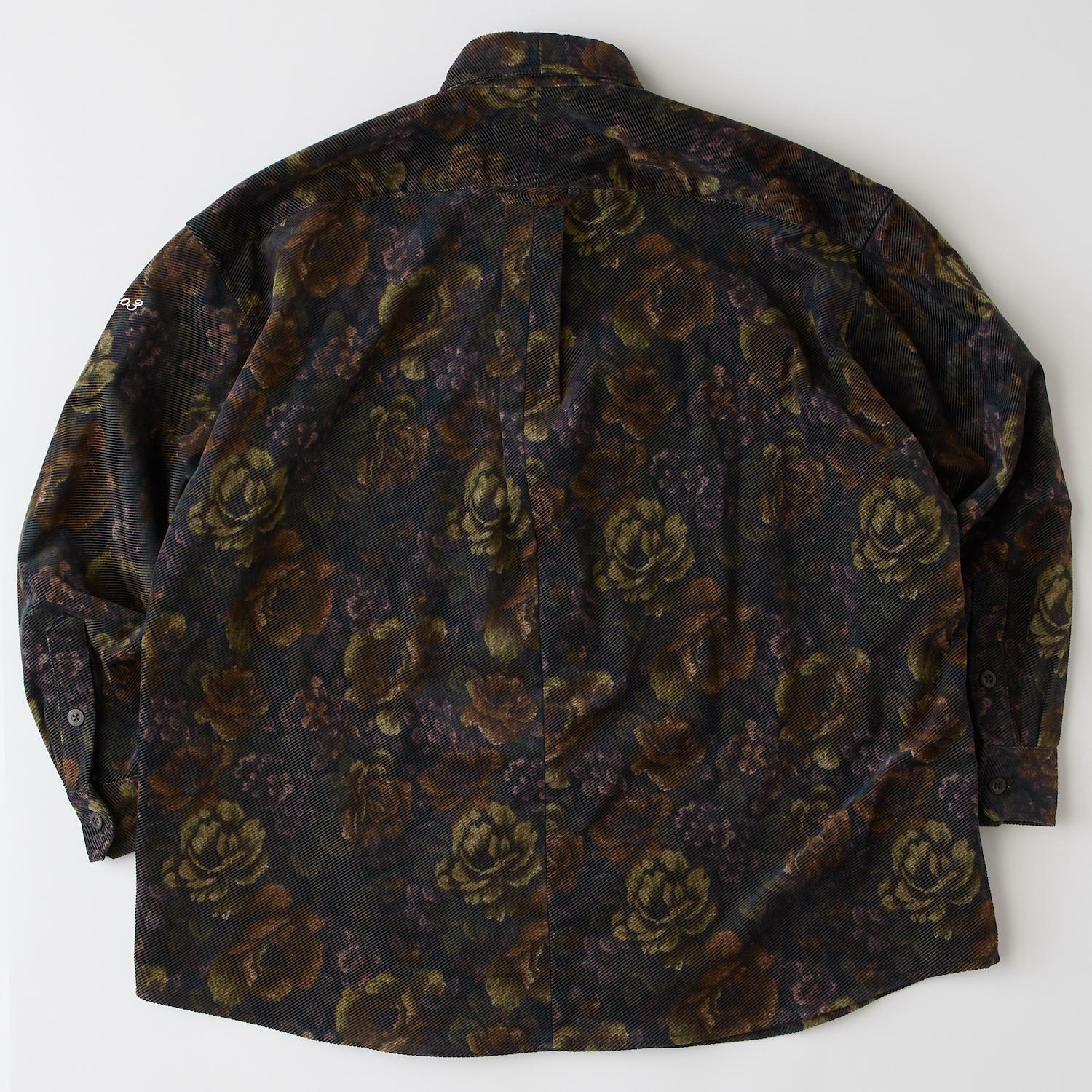 - > GIGABLOSSOM Corduroy Shirts GRN ボタニカルプリント コーデュロイ シャツ