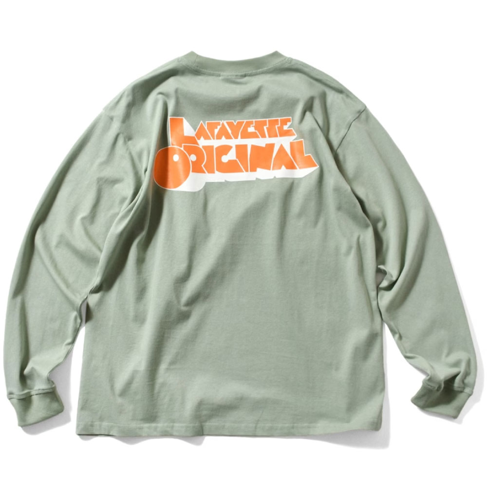 70年代のカルト映画をモチーフにしたタイポグラフィを、胸元と背面に大胆に配置したL/S Tシャツ。
