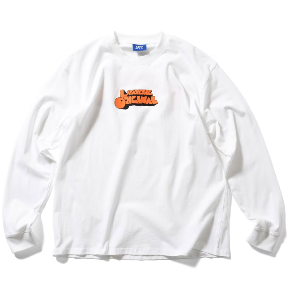 70年代のカルト映画をモチーフにしたタイポグラフィを、胸元と背面に大胆に配置したL/S Tシャツ。