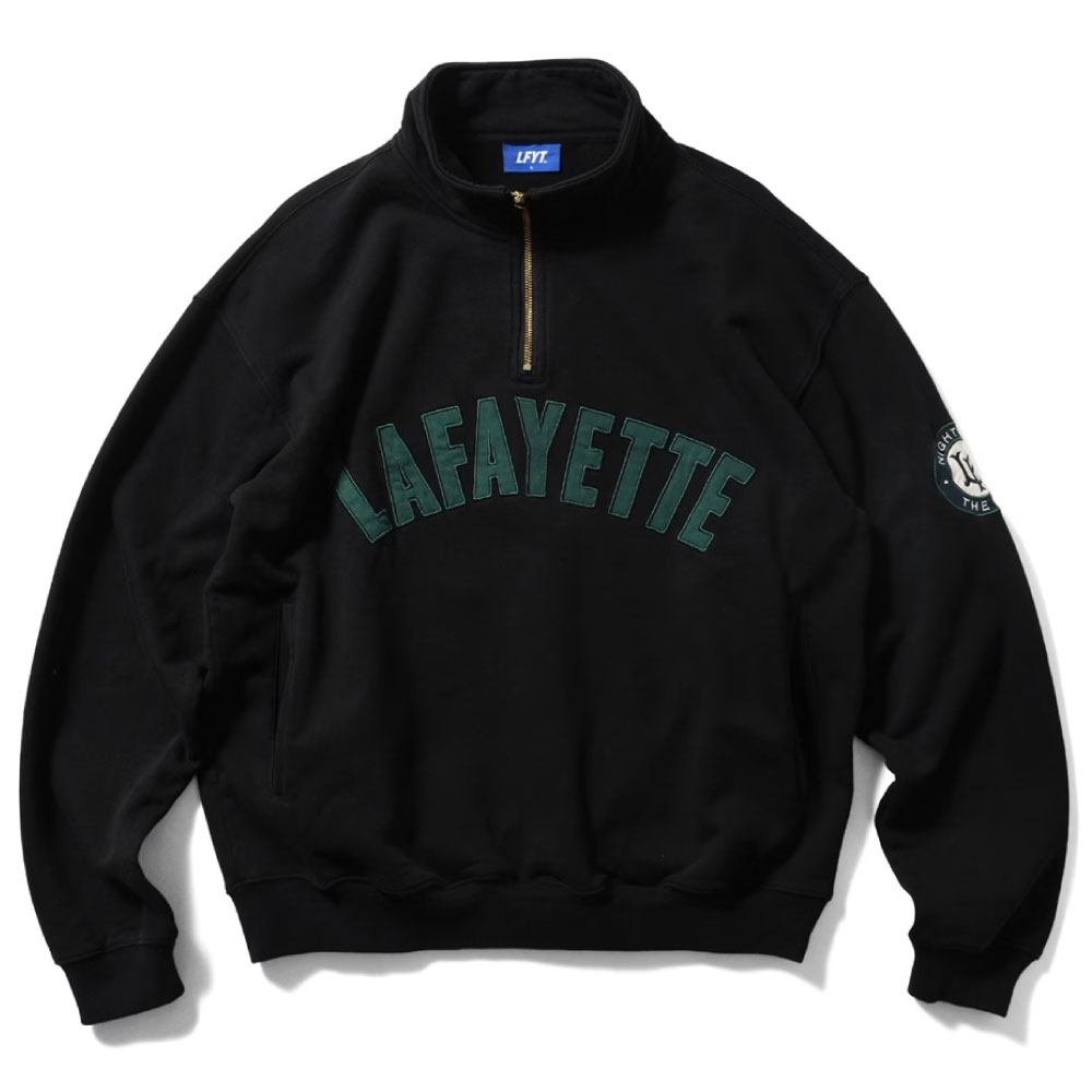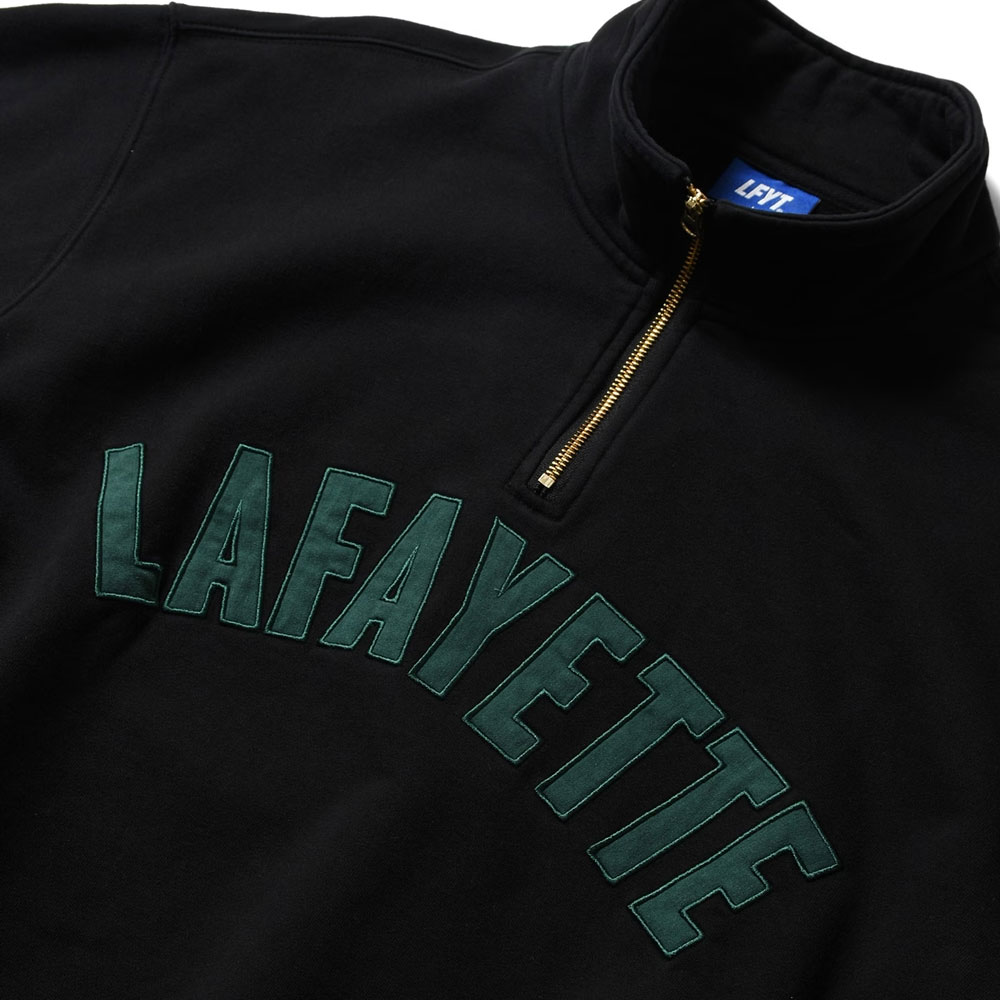 フロントにアップリケ仕様のLAFAYETTEアーチロゴを配したハーフジップスウェットとなります。