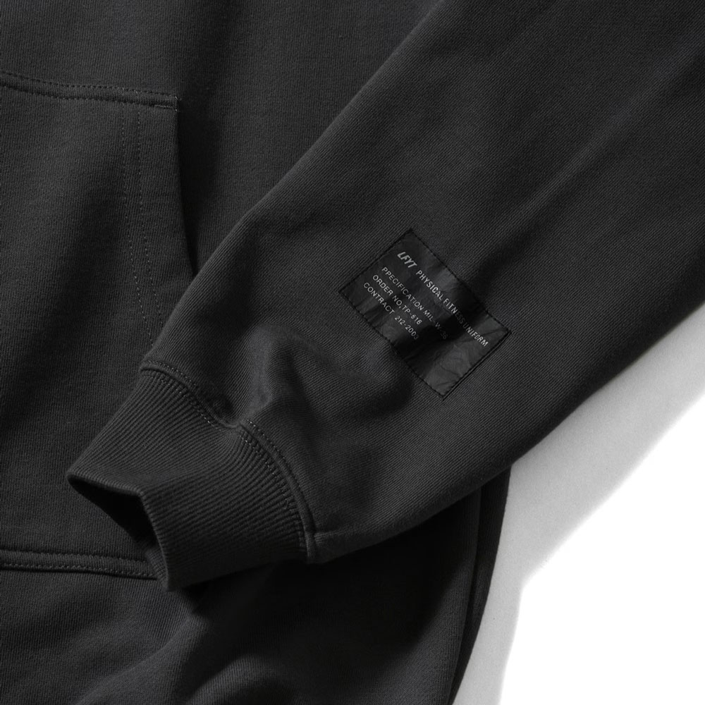 左袖にはミルスペック調デザインのタグを配置し、無骨なミリタリーテイストを効かせています。