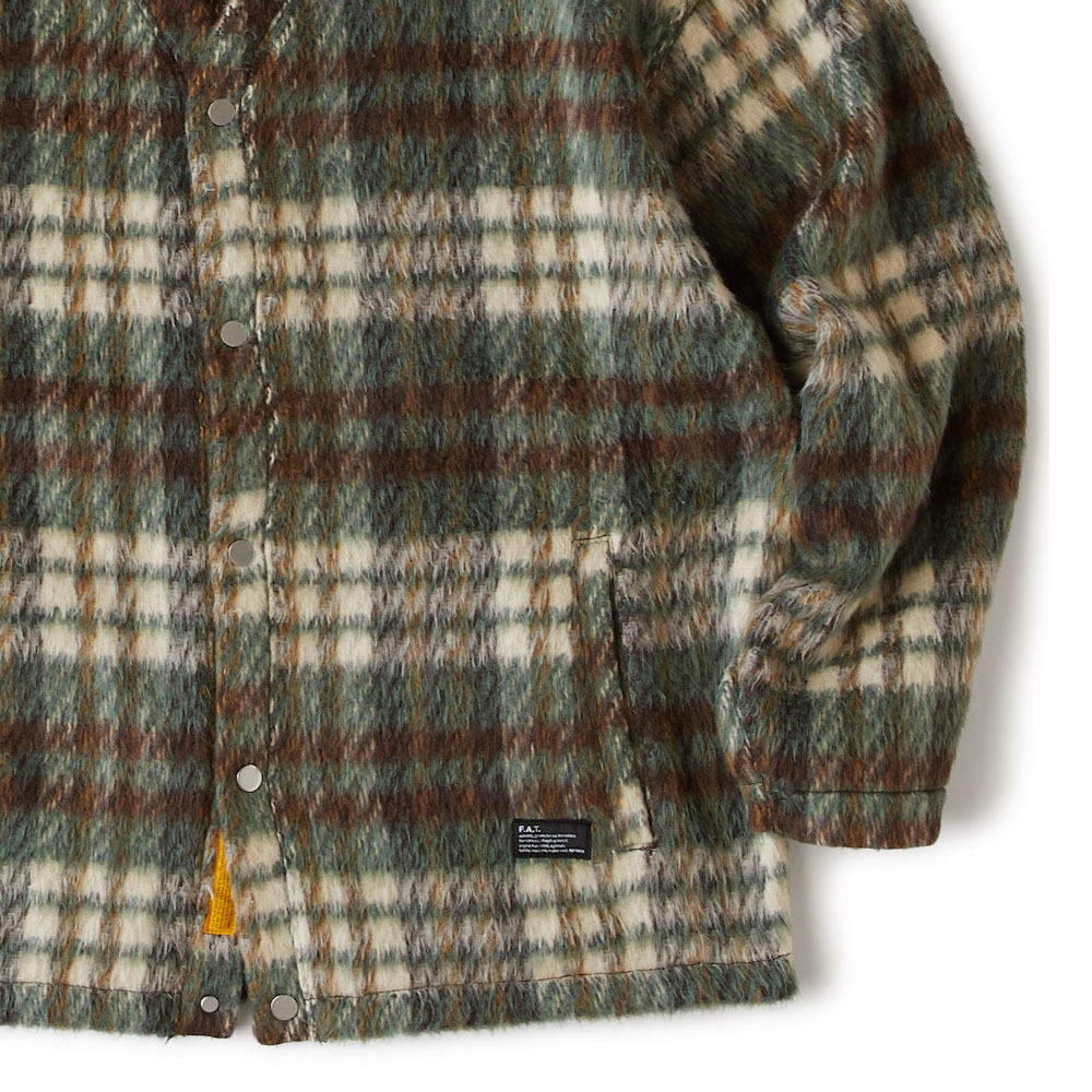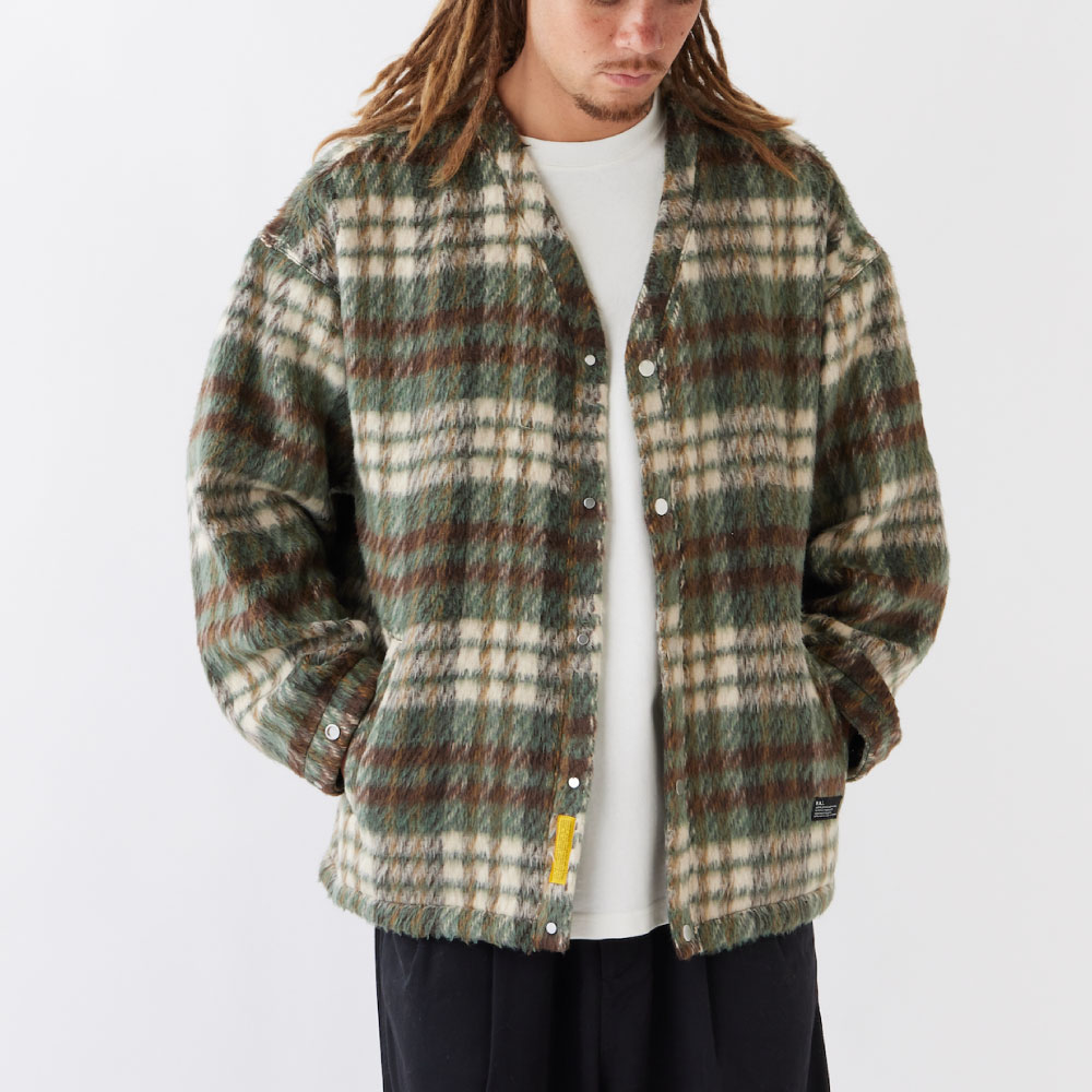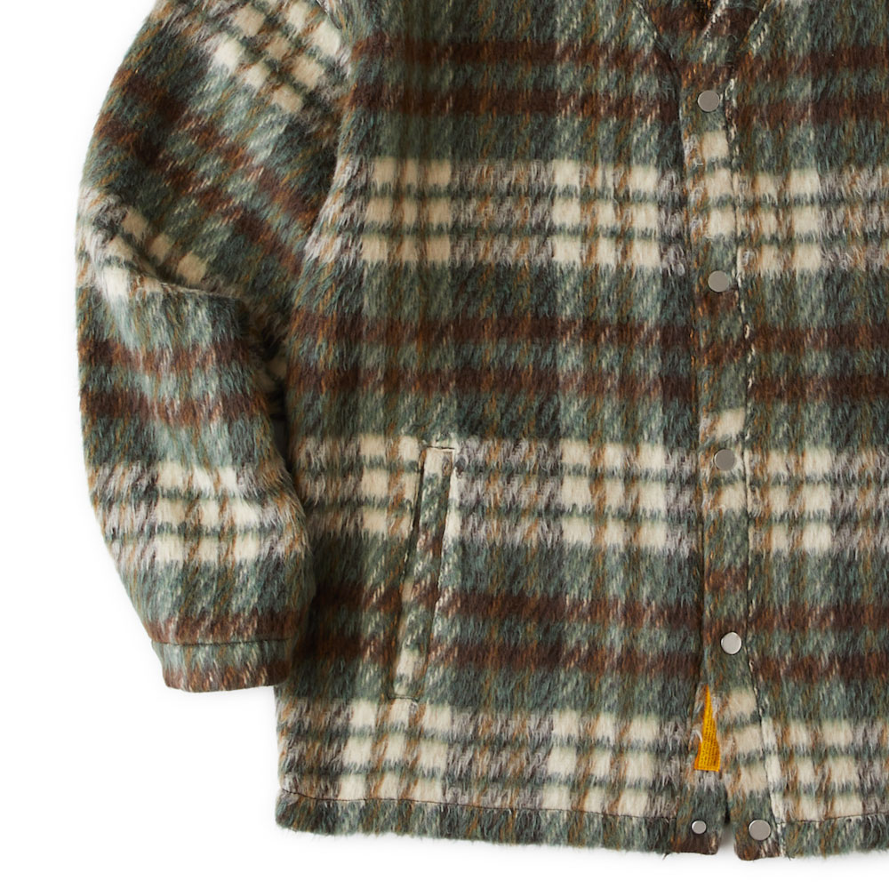 モヘアライクな起毛感が特徴のチェック素材を使用したスナップカーディガンとなります。