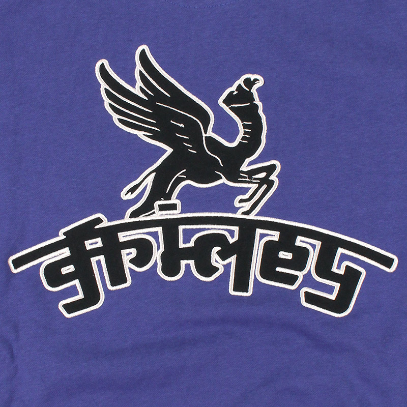 フロント、バック、両袖に様々なグラフィックスを刺繍を落とし込んだクルーネック。