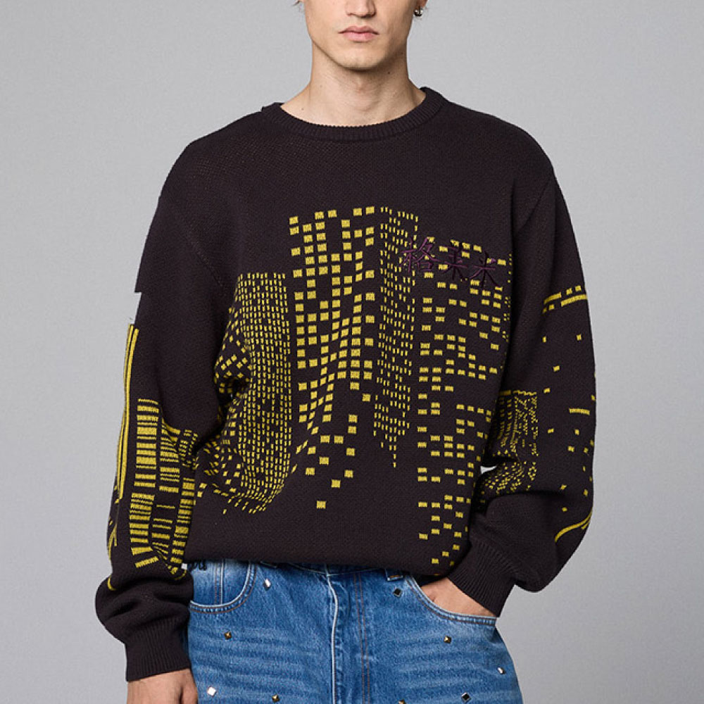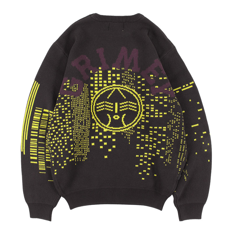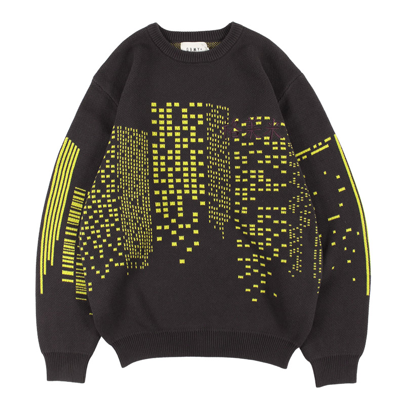 レトログラフィックスをジャガード織りで表現したコットンニットとなります。