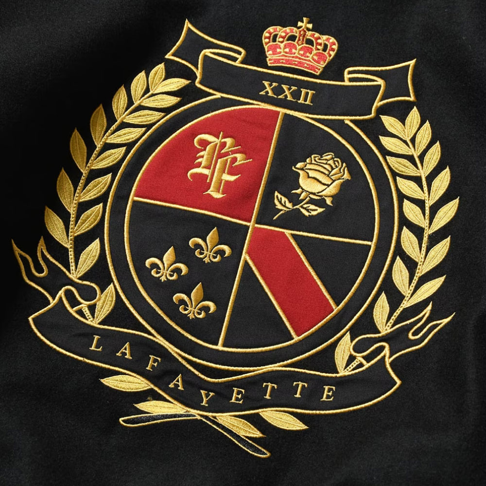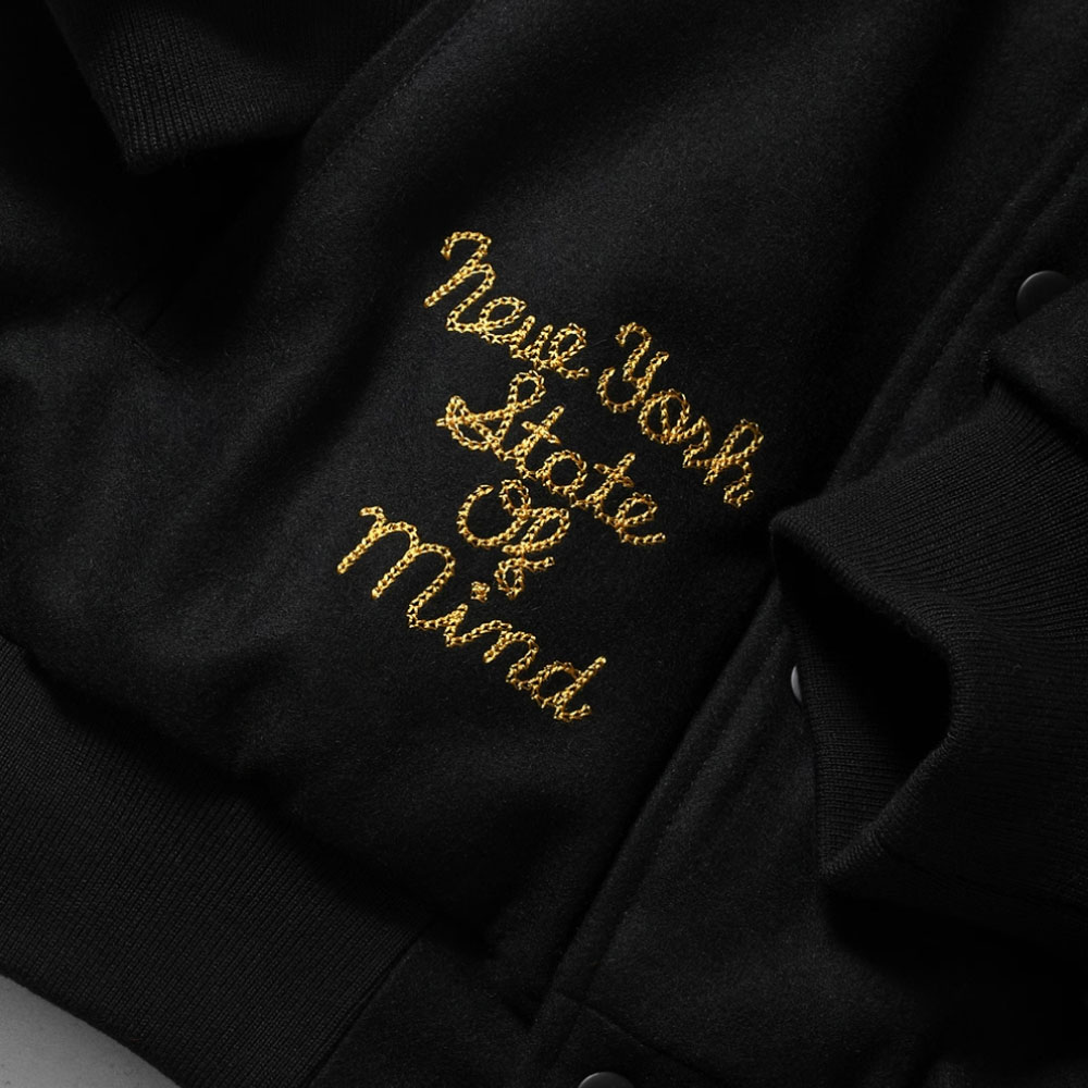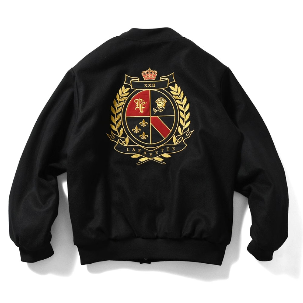 - > Heritage Melton Emblem Jacket BLK スタジャン スナップ モノグラムLFロゴ チェーン ステッチ メルトン ジャケット