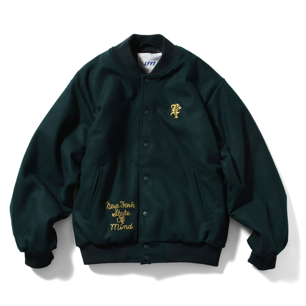 Heritage Melton Emblem Jacket Green スタジャン スナップ モノグラムLFロゴ チェーン ステッチ メルトン ジャケット