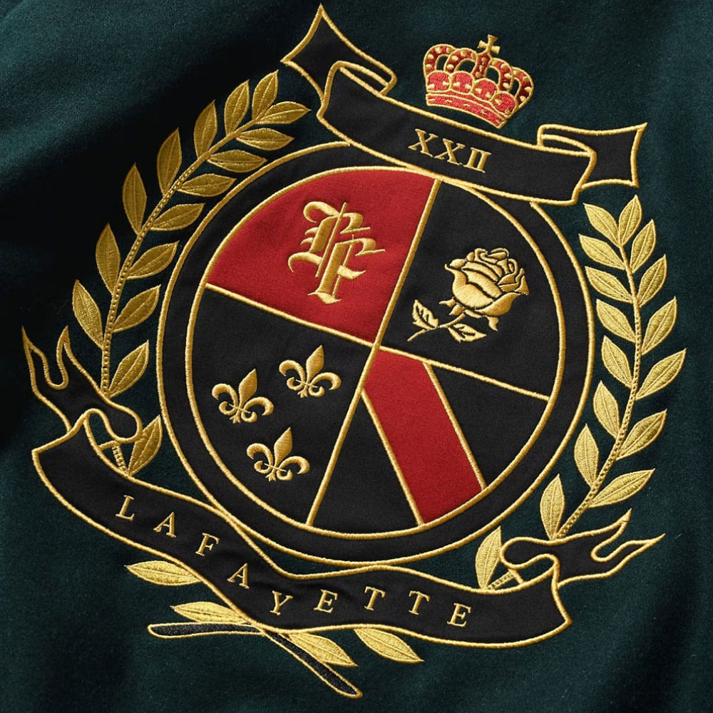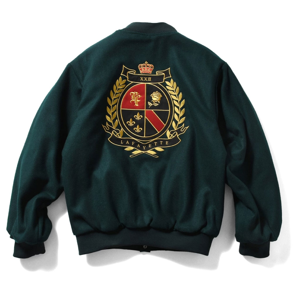 - > Heritage Melton Emblem Jacket Green スタジャン スナップ モノグラムLFロゴ チェーン ステッチ メルトン ジャケット