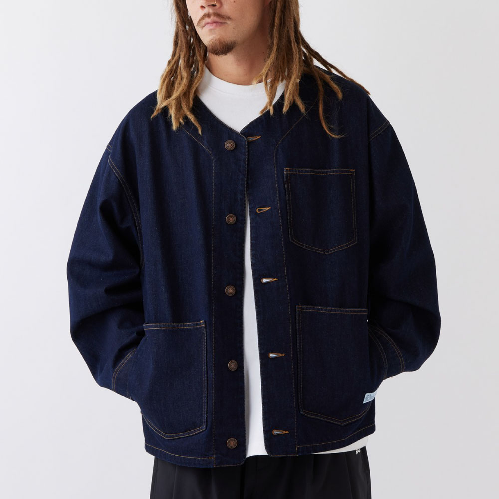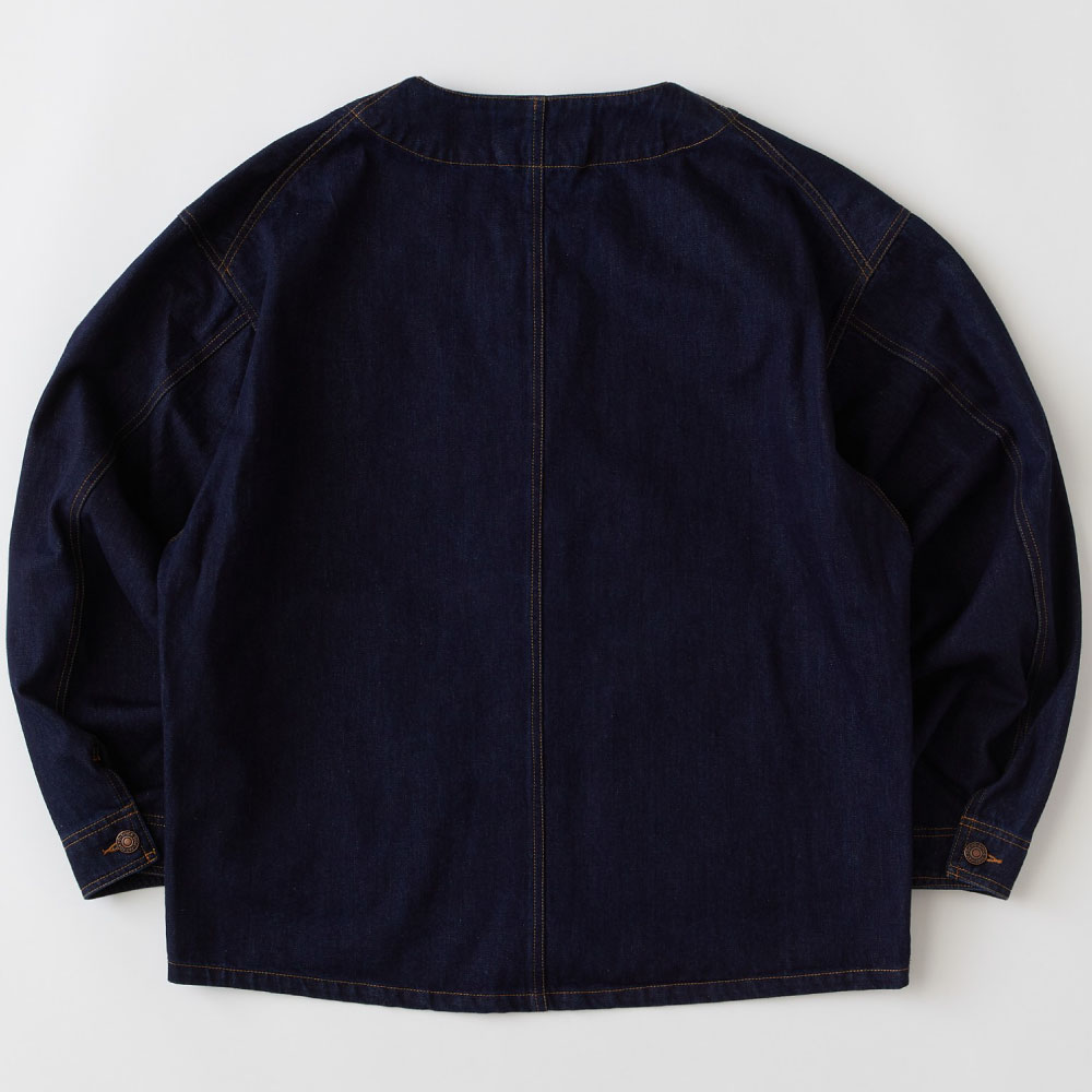 - > MACKSTEAM Denim Collarless Jacket デニム ノーカラー ジャケット
